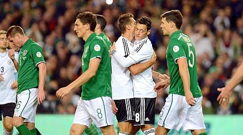 Mesmo jogando em Dublin, a Alemanha enfiou 6 a 1 na Irlanda, com gols de Klose, Ozil, Kroos(duas vezes) e Reus(duas vezes). Klose marcou seu 65º gol com a camisa aleã, ficando a três de chegar a Gerd Muller, maior artilheiro da história. A Alemanha segue 100% e lidera o grupo C com 9 pontos. A Suécia venceu a Ilhas Faroe por 2 a 1 e está na vice-liderança da chave com 6 pontos.