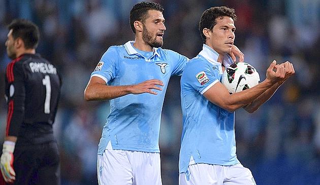 Duas partidas importantes abriram a 8ª rodada do Campeonato Italiano. No Estádio Olímpico de Roma, a Lazio derrotou o Milan por 3 a 2. O brasileiro Hernanes abriu o placar para os donos da casa. Candreva e Klose também marcaram para a Lazio, terceira colocada com 18 pontos. De Jong e El Shaarawy balançaram as redes para o Milan, que estaciona nos 7 pontos.